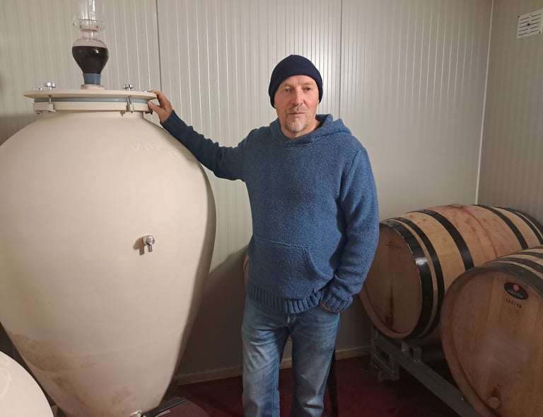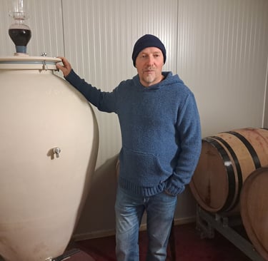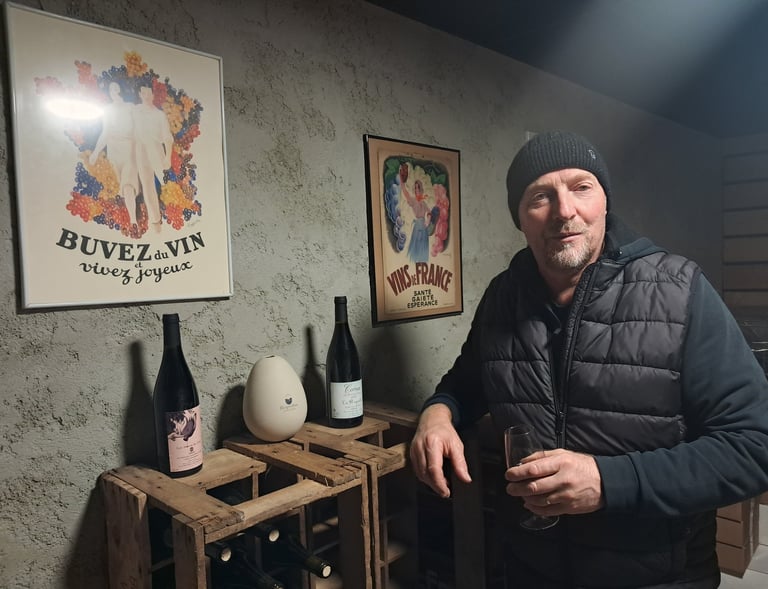 Syrah de la plaine de Cornas, non éraflée, élevée 12 mois en jarre céramique.