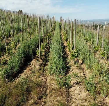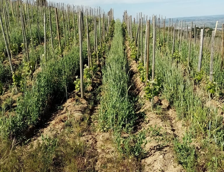 Sensibles à la nature qui nous entoure, nous cultivons nos vignes en agriculture biologique et n'utilisons aucuns intrants en cave à l’exception de faibles doses de sulfites.