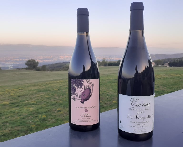 Situé sur les hauteurs de Cornas, le domaine est fier de produire des vins issus de la syrah, cépage emblématique de la Vallée du Rhône.